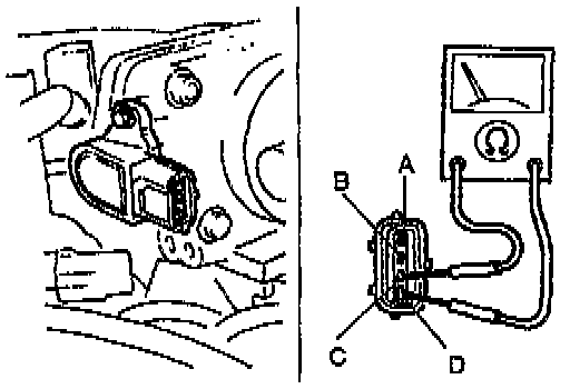 Adjust the continuity between the closed throttle position switch terminals C and D by using an ohmmeter.