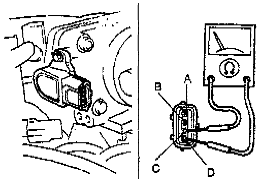 3. Check for continuity between throttle position sensor connector terminals C and D by using an ohmmeter.