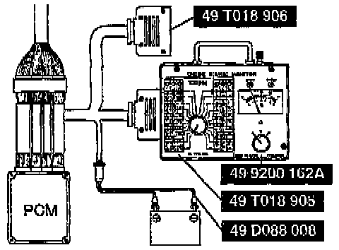 9. If the engine speed smoothly increases over 1,500 rpm check the torque reduction request signal at the PCM terminal 1Q by using an oscilloscope.
