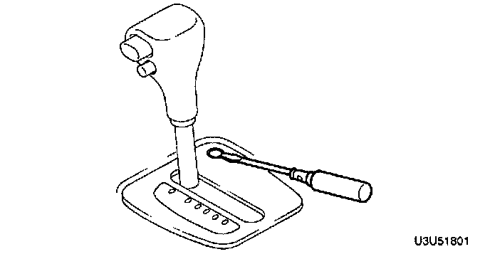 5. Insert a screwdriver into the emergency override button and push down. Verify that the selector lever can be shifted from P position.