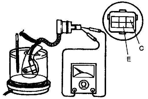 3. Measure the resistance between terminals C and E of the transaxle fluid temperature sensor.