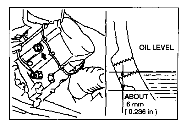 NOTE: Park the vehicle on level ground.1. Remove the oil level plug and the washer.