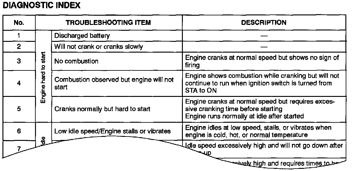 ^ The diagnostic index is for quick reference of all trouble symptoms in the symptom troubleshooting. Detailed description of each symptom enables correct inspection.