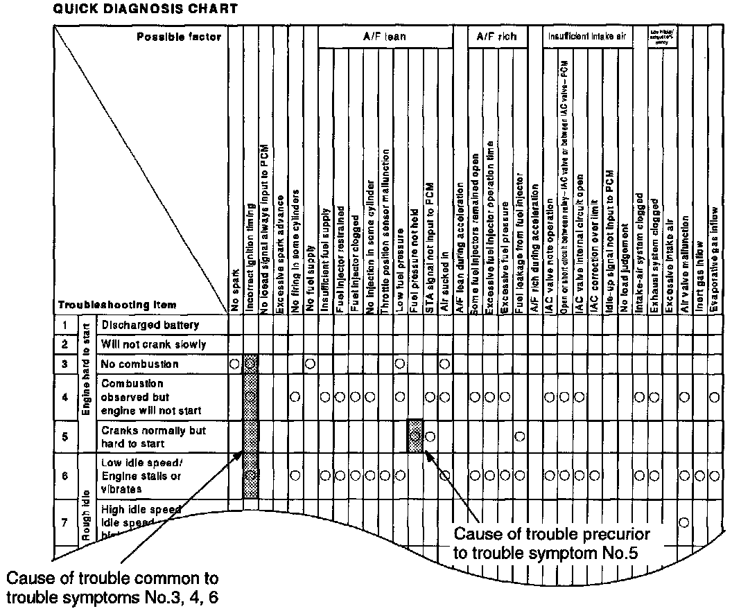 ^ Referring to quick diagnosis chart, assume systems related to the problem.
