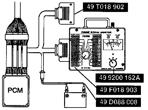 - Connect the Special Service Tools (SST)s (Engine Signal Monitor) to the PCM.