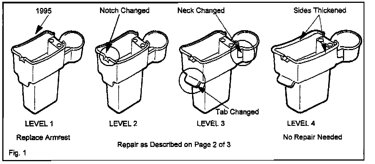 Four (4) levels of Protege center armrests are available. If a level one (1) center armrest is found, the entire center armrest console assembly should be replaced.