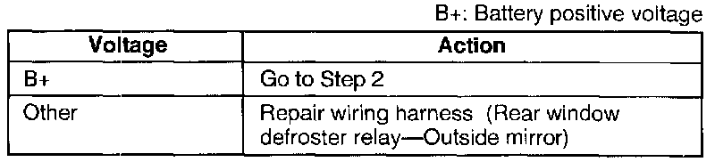3. Measure the voltage at the (B/L) terminal wire of the outside mirror connector.