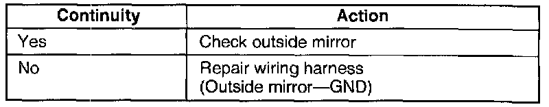 3. Check for continuity between the (B) terminal wire of the outside mirror connector and ground.