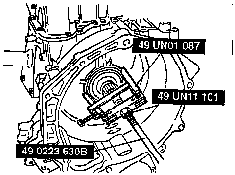 11. Use the SSTs or equivalent to remove the torque converter impeller hub seal. Check the seal contact surface on the torque converter impeller hub for excessive wear.