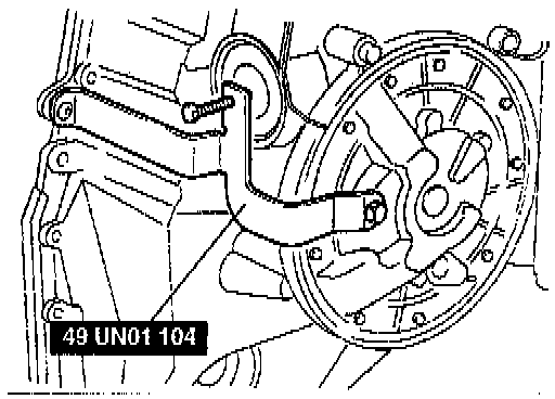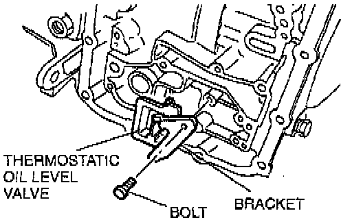 27. Remove the thermostatic oil level valve bracket bolt. Remove the bracket. Remove the filter from the forward clutch circuit.