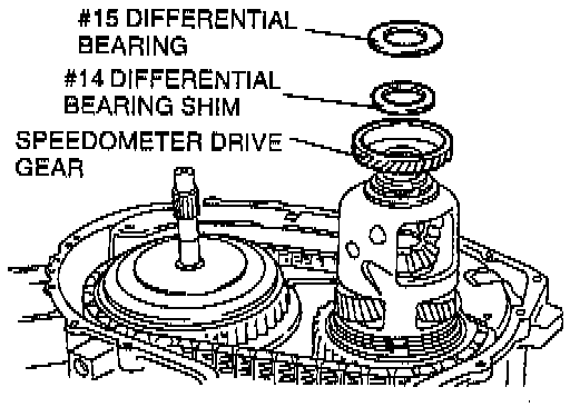 41. Remove the #14 differential bearing shim (selective fit) from the differential case.