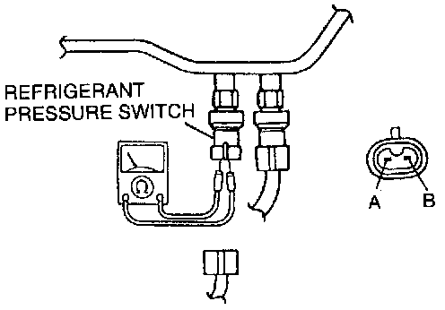 2. Disconnect the refrigerant pressure switch connector and verify that there is continuity between the switch terminals.