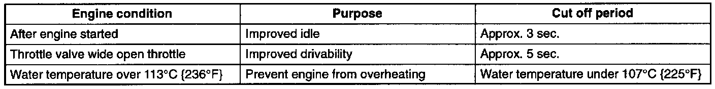 An A/C cut off system is used to improve idle smoothness immediately after starting the engine and to improve acceleration performance.