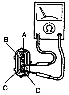 5. Adjust the continuity between the closed throttle position switch terminals C and D by using an ohmmeter.