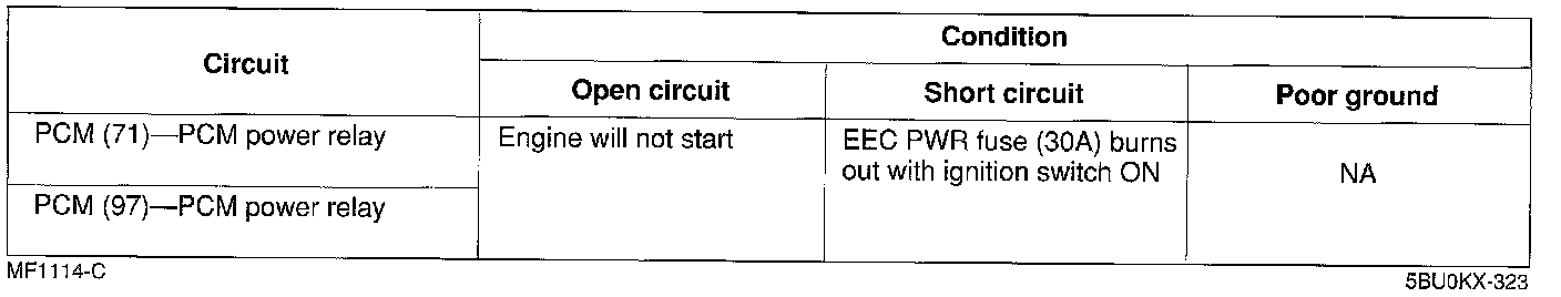 ^ If the circuit is shorted, the EEC PWR fuse (30A) will burn out.