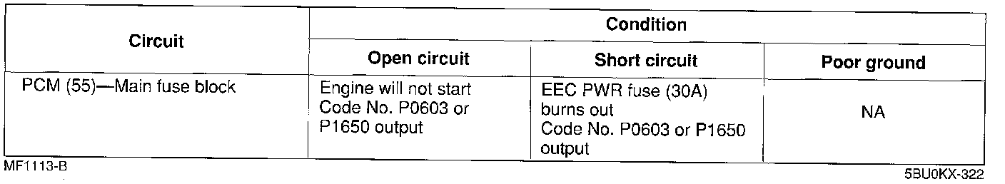 ^ If the EEC PWR fuse circuit has an open or short, Diagnostic Trouble Code No. P1605 is output.