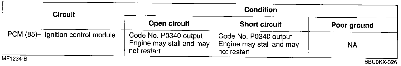 ^ If the camshaft position sensor or circuit has an open or short, Diagnostic Trouble Code No. P0340is output.