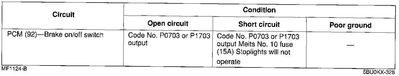 ^ If the brake on/off switch or circuit has an open or short, Diagnostic Trouble Code No. P0703 or P1703 is output.