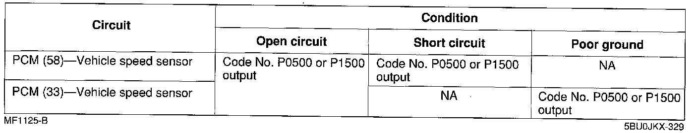 ^ If the vehicle speed sensor or circuit has an open or short, Diagnostic Trouble Code No. P0500 or P1500 is output.