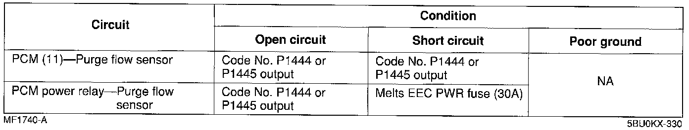 ^ If the purge flow sensor circuit has an open or short, Diagnostic Trouble Code No. P1444 or P1445is output.