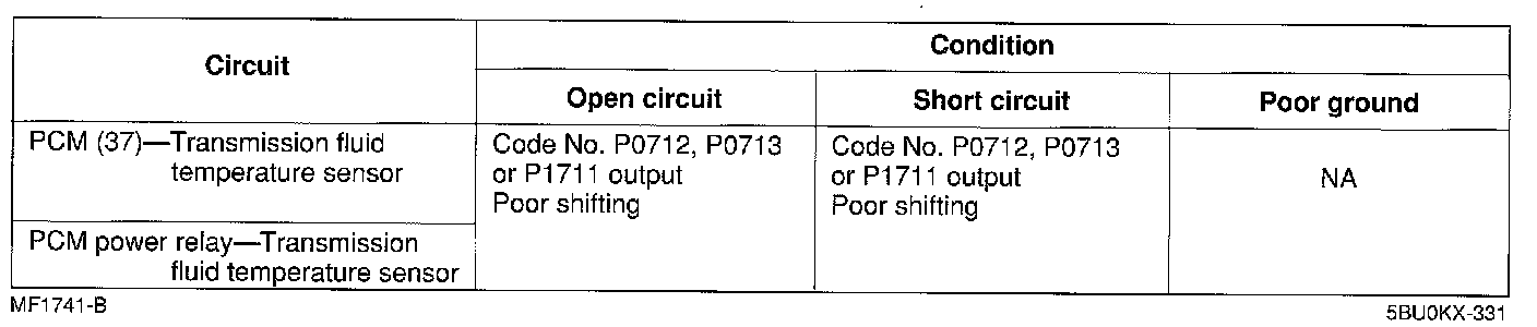 ^ If the transmission fluid temperature sensor circuit has an open or short. Diagnostic Trouble Code No. P0712,P0713, or P1711is output.