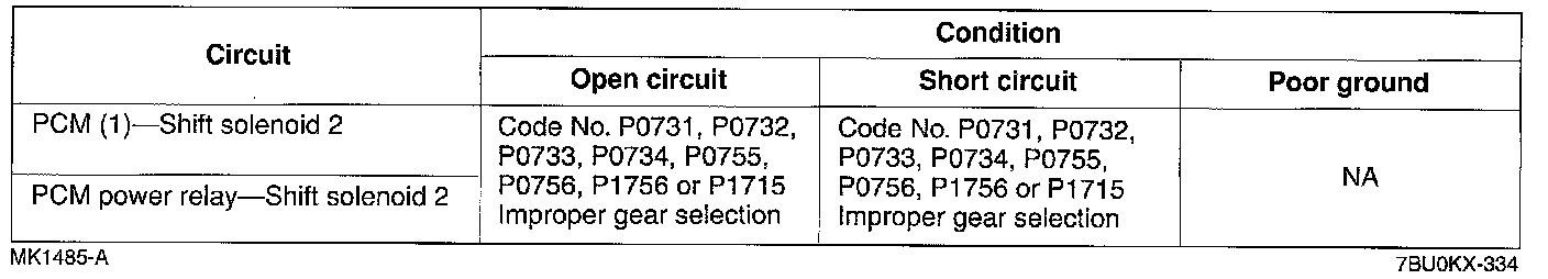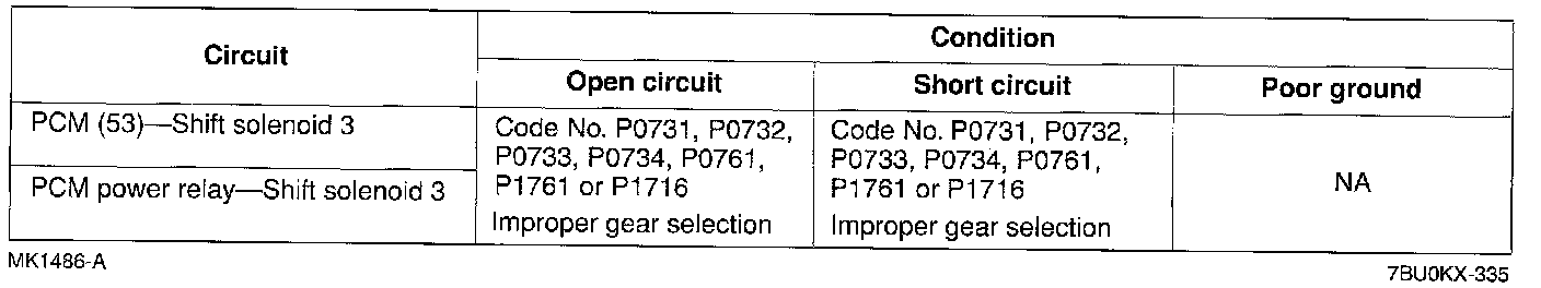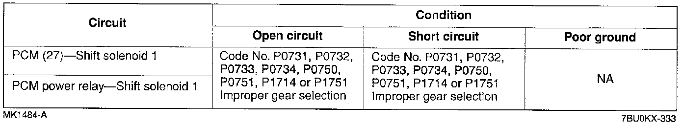 ^ If a shift solenoid or circuit has an open or short. Diagnostic Trouble Code No. P0731, P0732, P0733, P0734, P0750, P0751, P0755, P0756, P0760, P0761, P0765, P1751, P1756, or P1761 is output.