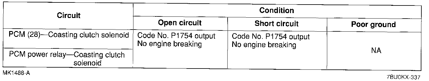 ^ If the coasting Clutch solenoid or circuit has an open or short, Diagnostic Trouble Code No. P1754 is output.