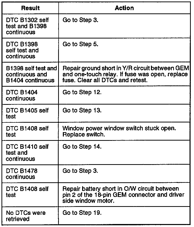 Flow Chart No. 2 - Symptom - Power windows completely inoperative - DTC B1302, B1398, B1404, B1405, B1408, B1410 and B1478.Step 1