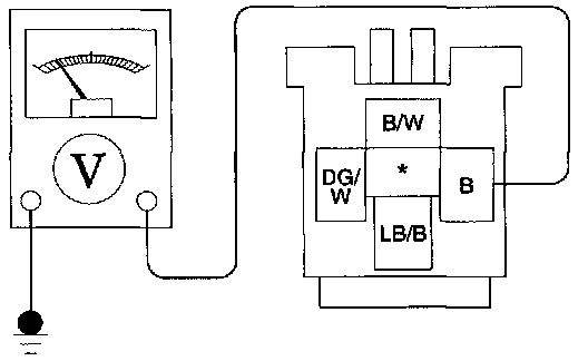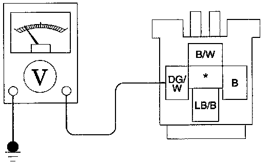 1. Check for battery voltage on B/W circuit between window relay and fuse panel (fuse 12, 10 A).