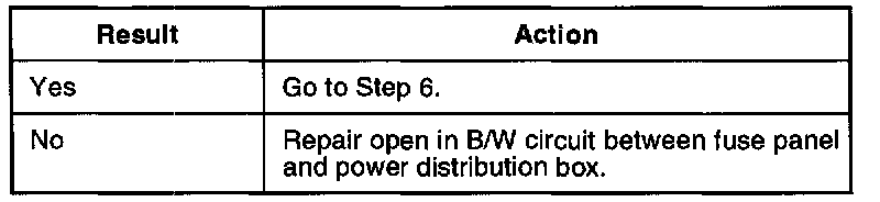 1. Check for open in B/W circuit between fuse panel and power distribution box.