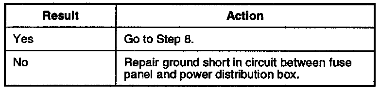 1. Check for ground short in circuit between fuse panel and power distribution box.