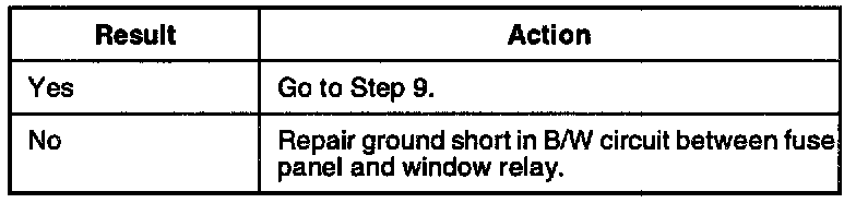 1. Check for ground short in B/W circuit between fuse panel and window relay.