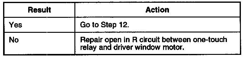 2. Check for open in R circuit between one-touch relay and driver side window motor.