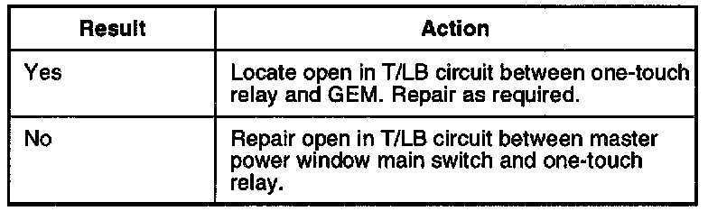 2. Check for open in T/LB circuit between power window main switch and one-touch relay.