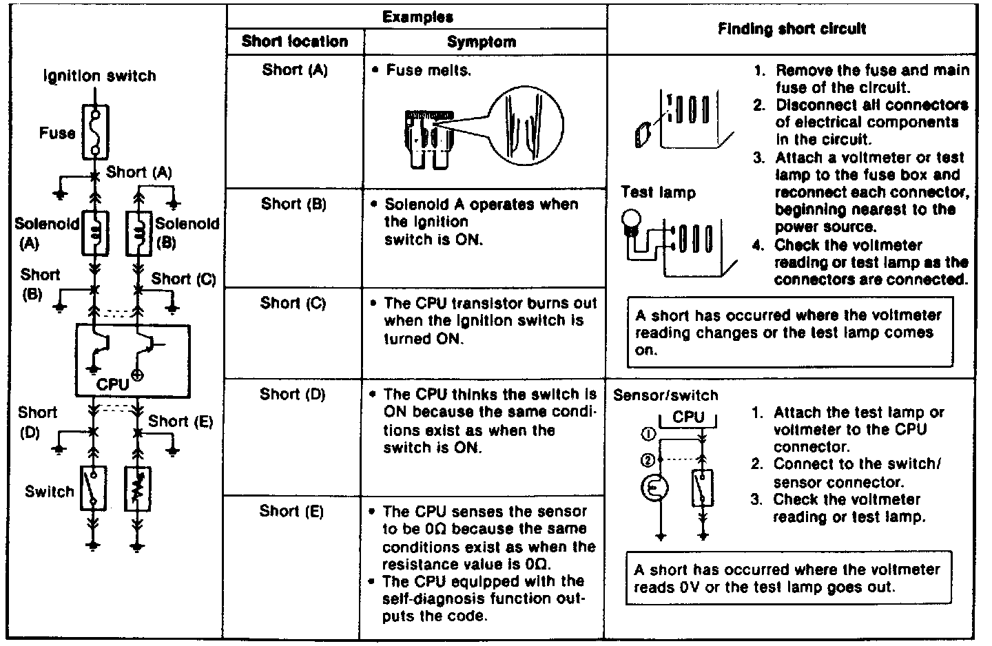 Finding Short Circuits-Circuits Connected To Control Unit: