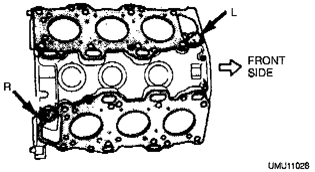 e. Place a new cylinder head gasket on the left bank with the L mark facing upward.