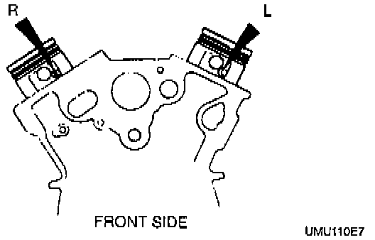 e. Insert each piston into the cylinder block with L mark (left bank) or R mark (right bank) faces the front of the engine. Use a piston installer tool to install.