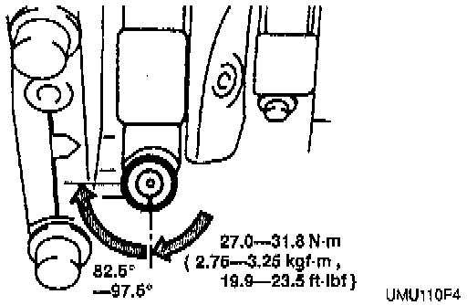 (3) Using the paint mark as a reference, tighten the nuts 82.5°-97.5°.