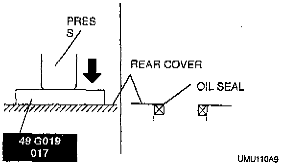 c. Press the oil seal into the rear cover by using the SST.