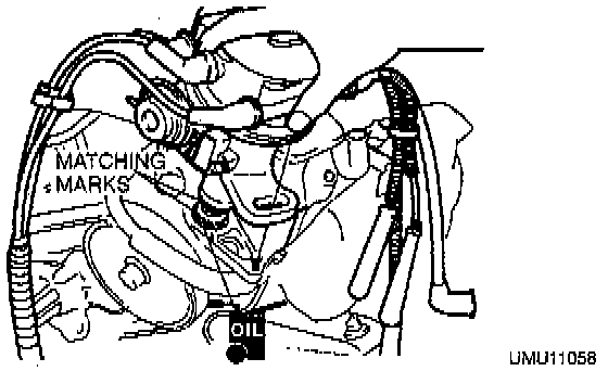 b. Apply clean engine oil to the drive gear, and match the matching marks as shown.