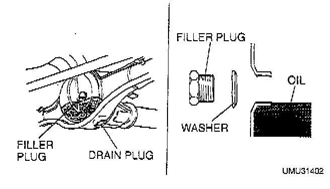 5. Add the specified oil from filler plug until the level reaches the brim of the plug hole.