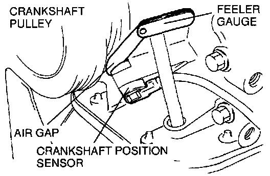 1. Measure the air gap between crankshaft pulley and crankshaft position sensor by using a feeler gauge.