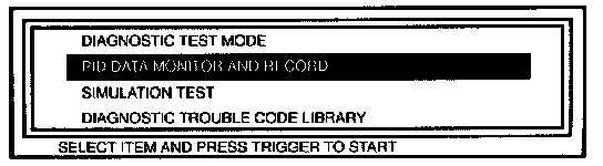 2. Select the "PID/DATA MONITOR AND RECORD function on the NGS display.