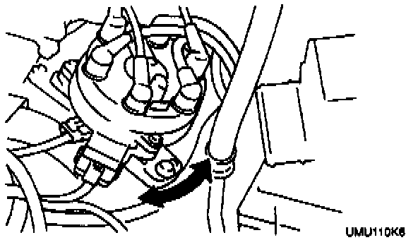 4. If not as specified, loosen the distributor lock bolts and turn the distributor to make the adjustment.