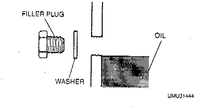 5. Add the specified oil through the filler plug hole until the level reaches the brim of the hole.