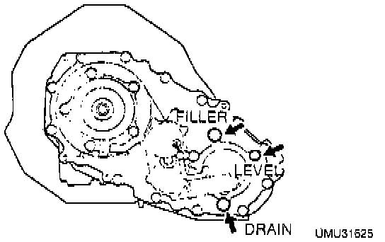 1. Remove the filler and level plugs.2. Remove the drain plug, and drain the oil into a container.