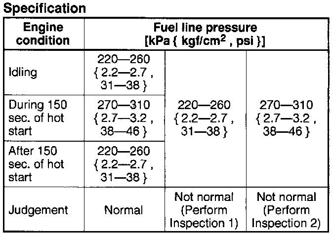 (1) If the pressure changes between 270 - 310 kPa (38 - 46 psi), check the following.