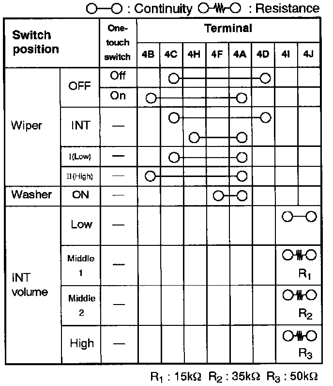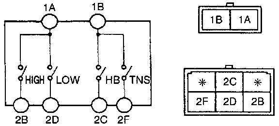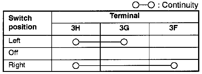 3. Check for continuity between the combination switch terminals by using an ohmmeter.