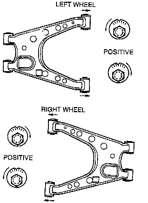 2. Turn the front and rear adjusting cam bolts the same amount in the opposite direction to provide the correct camber angle.