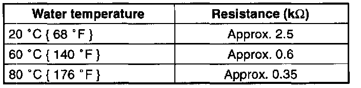 2. Place the transmission fluid temperature sensor in water with a thermometer as shown and heat the water gradually.